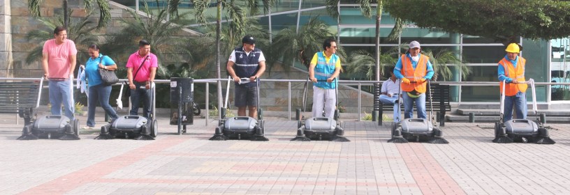 10 máquinas barredoras de propulsión manual comienzan en la ciudad de Manta un plan piloto de aseo en las calles más activas del casco comercial, reemplazando a las tradicionales escobas de paja pero no a los obreros que las usaban. Ahora ellos conducirán a las pequeñas máquinas, recogiendo toda la basura pequeña dispersa en las vías.