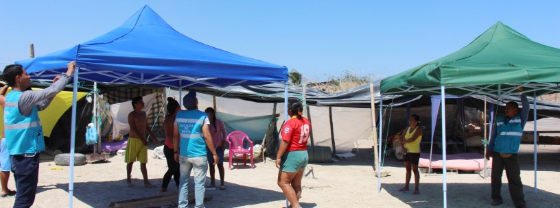 El Patronato de Amparo Social de Manta entregó el martes 14 de junio las últimas 4 carpas que tenía en existencia; dos de 20 metros cuadrados fueron entregadas a igual número de familias damnificadas en el Barrio San Pedro y otras dos, desplegables para protegerse del sol, a nueve familias que están en un terreno del Barrio Los Laureles en la Parroquia San Mateo.