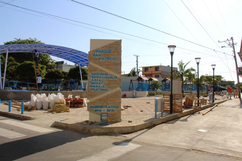 En una ciudad con insuficientes espacios públicos abiertos para sociabilizar y recreo, la habilitación de uno solo de ellos, aunque sea pequeño, es todo un acontecimiento celebrado por la comunidad circundante. Es lo que va a ocurrir con la próxima reapertura del Parque San Patricio en la Parroquia Eloy Alfaro de Manta, en cuya regeneración el Municipio ha invertido 162.399,76 dólares para dotarlo de juegos infantiles, máquinas para ejercitar el cuerpo, una glorieta alrededor de un árbol de ceibo y los monumentos restaurados de la Virgen y del expresidente ecuatoriano Eloy Alfaro Delgado.- FUENTE: GAD cantonal de Manta.