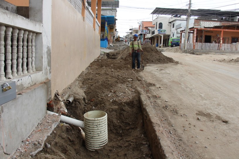 A casi un mes desde que inició la reconstrucción posterremoto de la infraestructura hidrosanitaria en la “zona cero” de Manta, se ha logrado enterrar unos 4 kilómetros de tuberías, entre las que servirán como alcantarillado y las que transportarán el agua potable. Esto es una mínima parte de los 160 kilómetros de tubos que se enterrarán para reemplazar las viejas redes colapsadas durante el sismo.