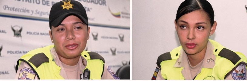Leonor Vera y Nathaly Sánchez son las únicas mujeres policías que pertenecen al Grupo de Operaciones Motorizadas (GOM) en Manta. Ellas, a diario, se movilizan en motos, patrullando los sectores conflictivos y precautelando la seguridad de la zona bancaria y comercial de la ciudad, junto a sus 36 compañeros.