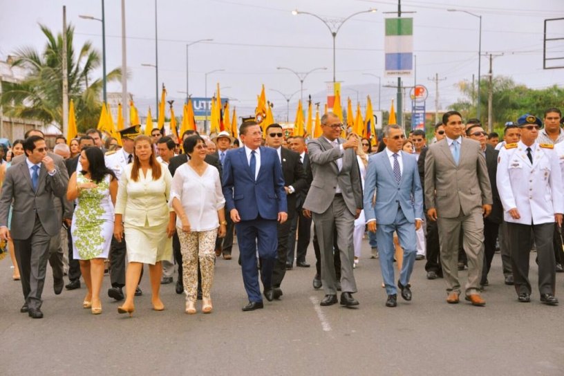 Esta mañana hemos visto que el vicepresidente de la República, Jorge Glas Espinel, encabeza el desfile cívico junto al alcalde Casanova, al prefecto Mariano Zambrano, la viceprefecta Clara Zambrano y la secretaria nacional de Gestión de Riesgos, Susana Dueñas, entre otros mandatarios populares y funcionarios públicos. Gran cantidad de espectadores ocupan los flancos de las calles por donde pasa el desfile y los espacios alrededor de la tribuna oficial.