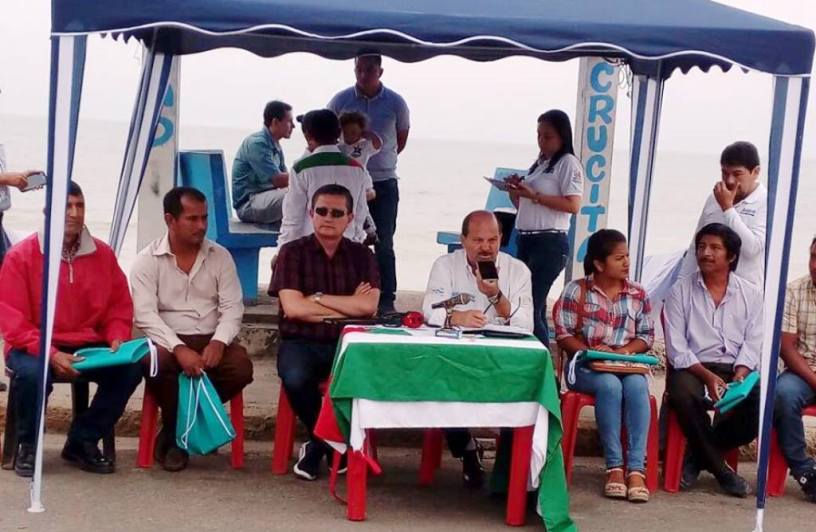 Alrededor de los dos políticos estaban líderes sociales de Crucita, testigos del examen de resultados que hicieron Casanova y Bergmann de la Ley de Solidaridad expedida para afrontar los estragos del terremoto, además de la revisión que también hicieron de los progresos en el proceso de recuperación de la capital manabita después del seísmo.