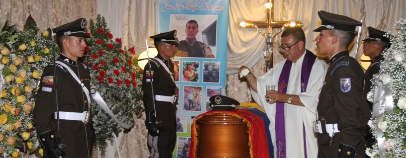 Se ofició una misa con presencia de altos mandos policiales y la delegada del Ministro del Interior, Carina Argüello, que ejerce las funciones de subsecretaria de Seguridad. La máxima jerarquía del mando policial estuvo representada por el general Milton Zárate, jefe del Estado Mayor y el coronel Freddy Ramos, comandante de la zona 4. También se hizo presente Xavier Santos, gobernador de Manabí, además de José Serrano, exministro del Interior.
