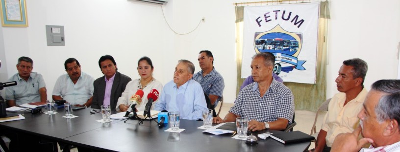 Acompañaron a Nel Párraga en la rueda de prensa: el concejal Johnny Mera; Florencio Ruiz, director operativo municipal de Tránsito; y representantes de las diversas cooperativas de buses.
