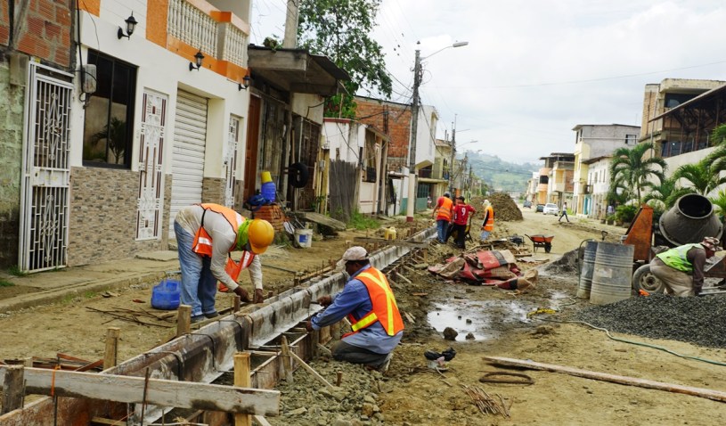 Inició la construcción de bordillos, cinta gotera y acera que comprende la regeneración de la Calle 24 de Mayo de Chone, en un tramo de cuatro cuadras desde la Calle 7 de Agosto hasta la Calle 24 de Julio.