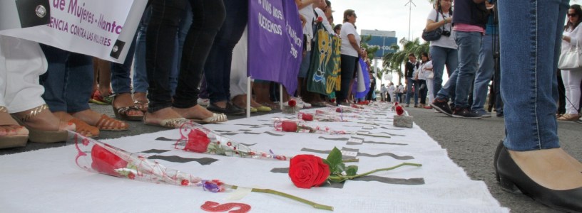 Frente al parque central se colocaron rosas en memoria de todas las víctimas de feminicidio y se mostraron carteles con frases de rechazo a la violencia de género y otras que invocaban paz. En ese contexto se dio a conocer que hace pocos días entró en vigor la campaña motivacional “Manta sin femicidios”.