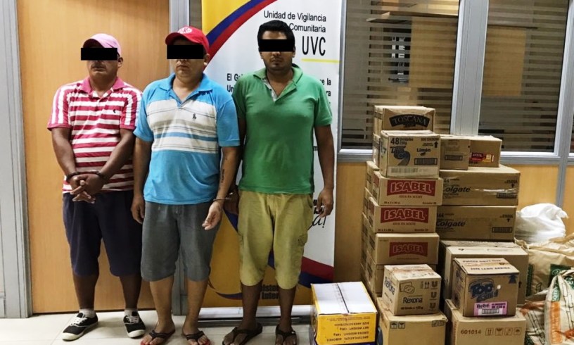 Los policías se trasladaron hasta el domicilio de Ángel M., lugar en el que encontraron varios productos. Las tres personas fueron detenidas y como indicios se obtuvo cajas con atunes, aceites, jabones, pastas dentales, café y sacos con arroz y azúcar.