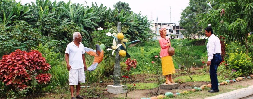 Las esculturas representan a estas tradiciones: la Leyenda del Colibrí, posado en un árbol de naranjas, símbolo de Chone como tierra de los “naranjos en flor”; la comadrona, preparando la bebida que se brindaba a las mujeres antes de dar a luz, para forjar la valentía en los hombres y la hermosura en las mujeres. Además, la iguana, como especie autóctona del sector; y, el caballo, medio de transporte tradicional del campesino manabita.