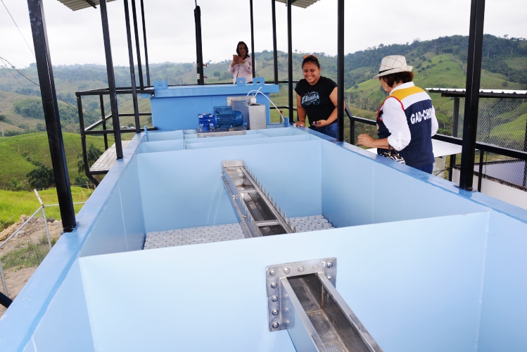 La flamante planta potabilizadora de agua para los pobladores de la Parroquia Chibunga, Cantón Chone, se halla en fase de pruebas antes de que sea inaugurada oficialmente por el alcalde Deyton Alcívar.