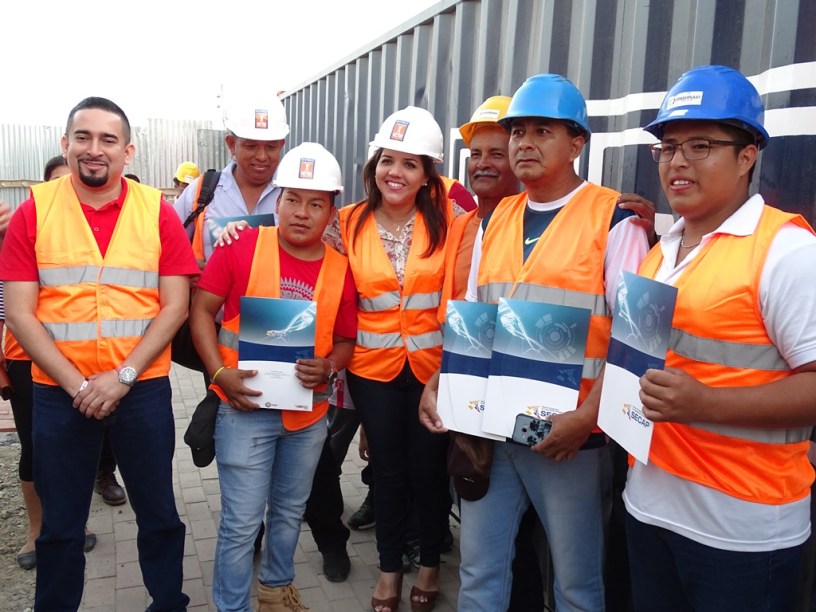 El sábado 18 de noviembre en curso, durante su visita a la Urbanización Nueva Jaramijó que el ministerio a su cargo construye en ese cantón, la ministra María Alejandra Vicuña entregó personalmente el certificado de capacitación respectiva a 9 trabajadores empleados allí.