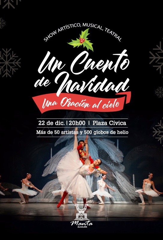 El espectáculo es organizado por la Dirección de Gestión Cultural de la Administración municipal de Manta y consiste en un show artístico (música, teatro) denominado “Un cuento de Navidad – Una oración al cielo”, que se presentará el viernes 22 de diciembre 2017 desde las 20h00, en la Plaza Cívica Eloy Alfaro.