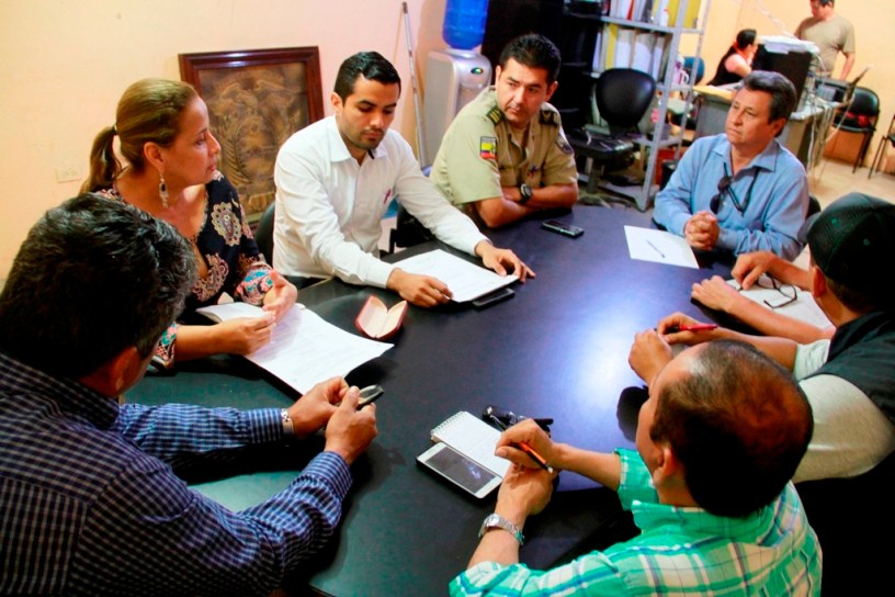 La reunión tuvo la participación de Eduardo Proaño Reyes, comisario de Policía Nacional; Antonio Zambrano, jefe de Riego y Desastre y Secretario del COE cantonal; Martha Chávez Palacios, jefe municipal de turismo; Yimber García, inspector municipal; Horacio Almeida, presidente del Consejo Barrial de Platanales y San Rafael.