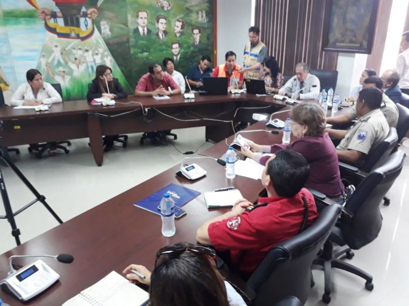 Patricio Espinel, sub director municipal de Gestión de Riesgos, recordó el trabajo que deben cumplir las siete mesas técnicas del COE: mesa 1, agua; mesa 2, salud y atención pre hospitalaria; mesa 3, servicios básicos; mesa 4, alojamientos temporales y asistencia humana; mesa 5, educación y emergencias; mesa 6, productividad; y, mesa 7, infraestructura.