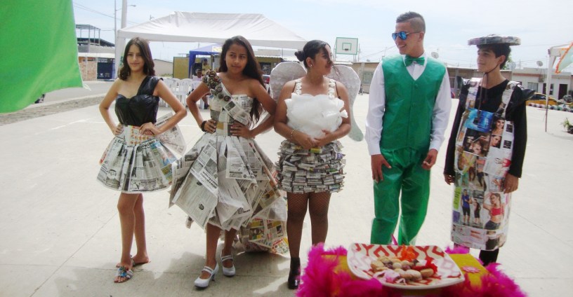 En un instante del acontecimiento, los miembros del club lucieron prendas de vestir elaboradas con material reciclado.