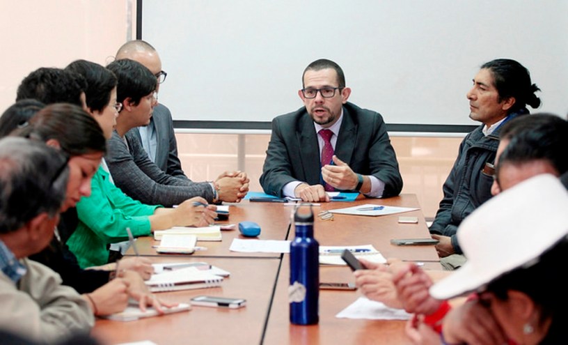 Uno de los salones del Consejo Nacional de la Judicatura (CNJ), en Quito, es el lugar donde el miércoles 4 de julio de 2018 un vocal de este organismo recibió a varios dirigentes indígenas ecuatorianos y de la FIAN -organización internacional que defiende el derecho a la alimentación-, que pidieron revisar la actuación judicial contra comunidades que se oponen a la minería inconstitucional.