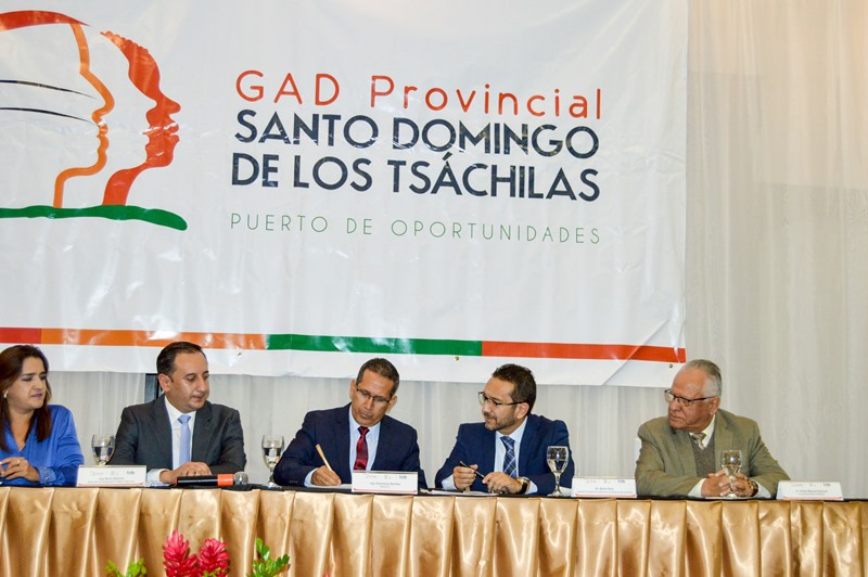 Hace poco se realizó en Santo Domingo de los Tsáchilas una ceremonia oficial para suscribir el convenio de crédito entre el Gobierno autónomo de esta provincia y el BDE. Hubo la presencia de Geovanny Benítez y Andrea Maldonado, prefecto y viceprefecta anfitriones; Byron Ruiz, gerente general del BDE; Boris Palacios, ministro de Transporte y Obras Públicas; Paúl Granda, secretario de Gestión de la Política; Mary Verduga, gobernadora de Santo Domingo; Ignacio Mendoza, gerente del BDE zonal Manabí; y otras autoridades con jurisdicción nacional o local.