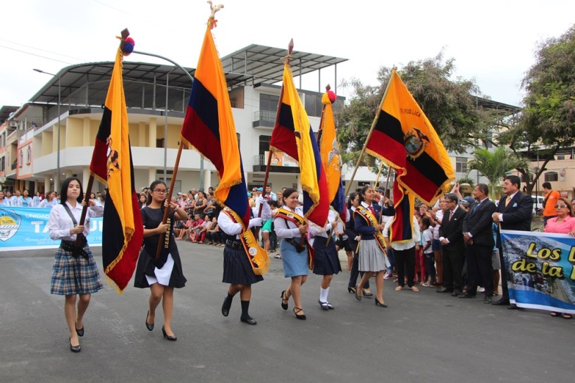 El segundo bloque fue conformado por los abanderados del tricolor del Ecuador; mientras que el tercero lo integraron doce instituciones educativas de Tarqui. El último y cuarto bloque fue para los comités barriales, asociaciones de comerciantes, reinas, clubes, y otras organizaciones sociales.