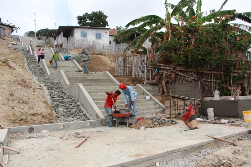 En la ciudad de Manta, asentada sobre una topografía irregular, es corriente hallar barrios separados por un declive que imposibilita el tránsito vehicular y obliga a que los vecinos caminen (subiendo o bajando) de un plano al otro mediante un sendero incómodo.