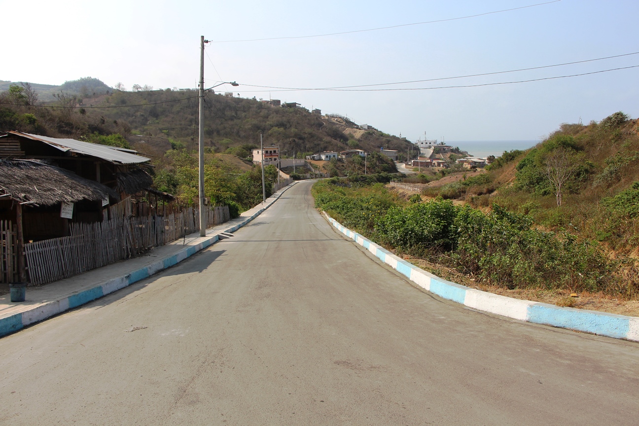 Aspecto de la vía de entrada y salida, cabecera parroquial de San Lorenzo, Manta.