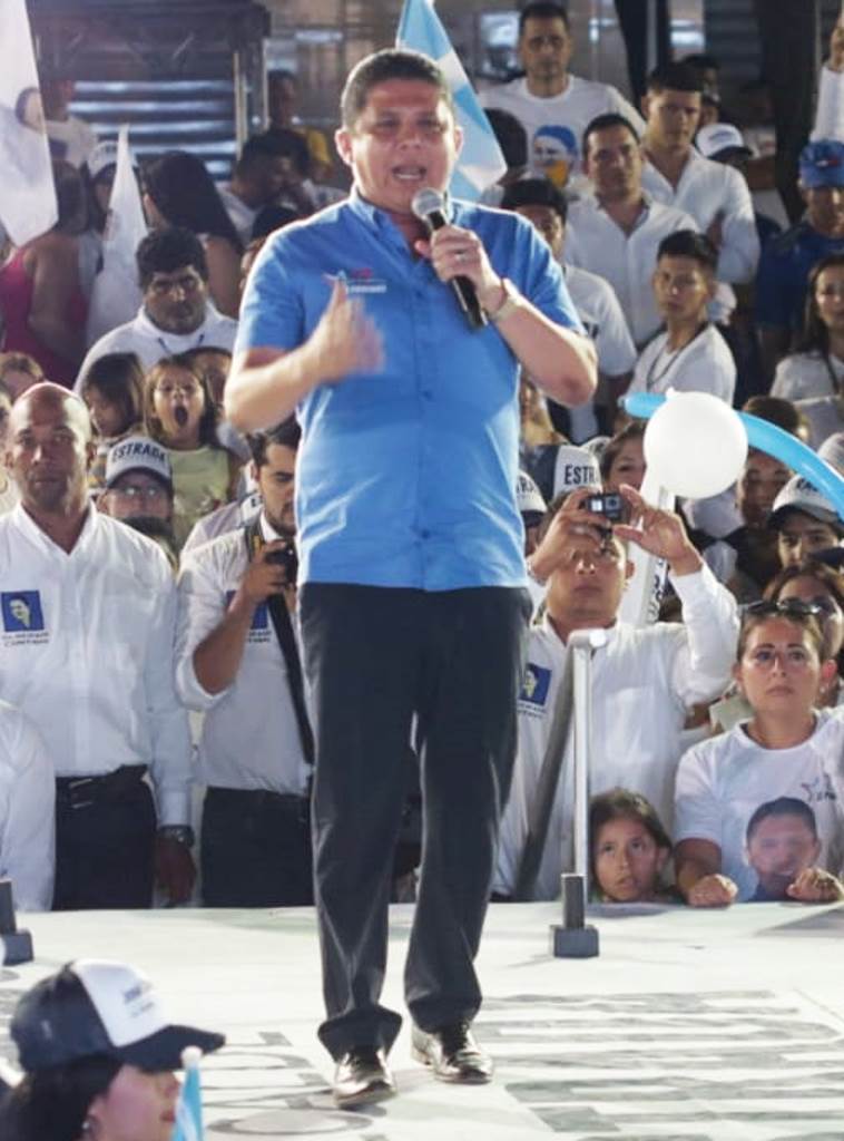 Se presentó acompañado de todos los candidatos a concejales de su lista y de los candidatos a prefecto y viceprefecta de Manabí, Jaime Estrada Bonilla y Saruka Rodríguez.