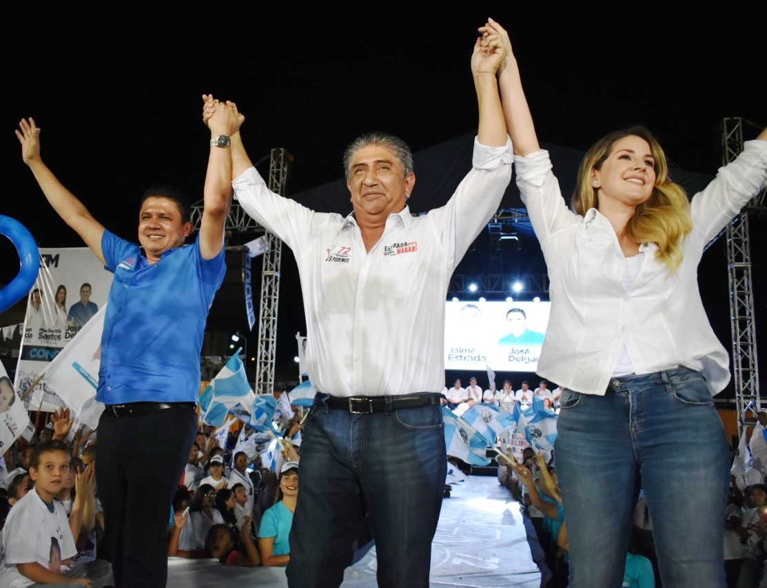 El mitin nocturno atrajo a centenares de partidarios y culminó con esta proclama efervescente: “Sí Podemos, Manta, con José Delgado y Jaime Estrada”.