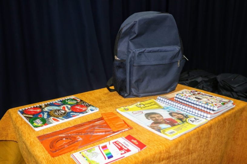 Esos kits escolares comprenden una mochila impermeable, cuadernos grandes y pequeños, hojas de papel en blanco, lápices de colores, juego geométrico, entre otros artículos destinados a estudiantes cuyas familias tienen una economía muy limitada.