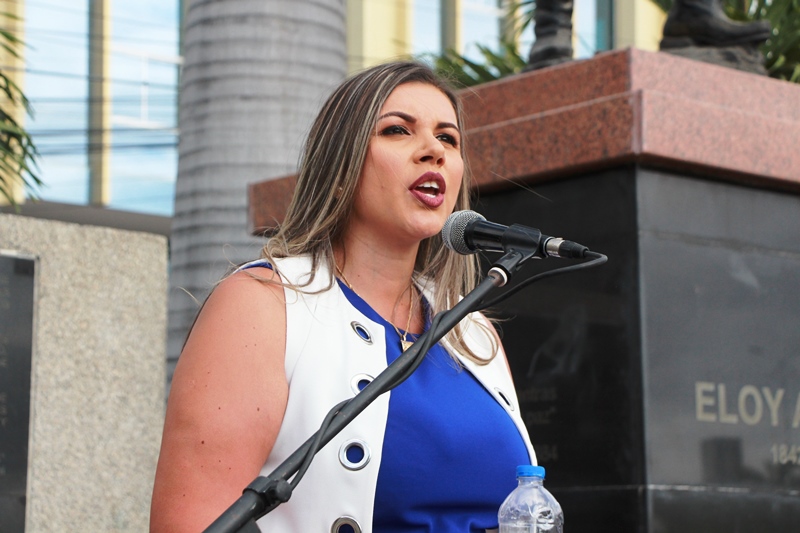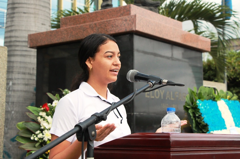 La alumna del Colegio 5 de Junio, Maholy Ponce, resaltó el legado del ‘Mejor ecuatoriano de todos los tiempos’ (Eloy Alfaro), de quien ni siquiera la “Hoguera Bárbara” ha podido destruir sus ideales de un Estado progresista y con igualdad. “En nuestros centros educativos han logrado mantener en la memoria este legado. Hoy, la espada se levanta y nuestros corazones laten, para sostener ante ustedes la trascendencia de su obra”, dijo la estudiante.