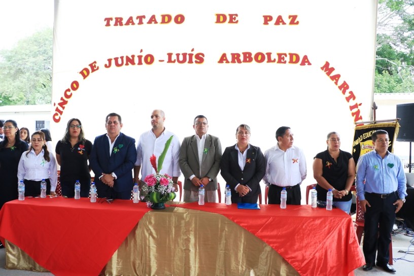 Al día siguiente, en la ceremonia celebrada en la U. E. Cinco de Junio habló primero la coordinadora Mayra Guaraca y dijo que en este momento ya no caben en la sociedad las actitudes de lanzar piedras y de darse golpes como se lo hacía hace décadas, y supuso que en esto estarán de acuerdo los ex alumnos, que hoy son padres y están llamados a formar mujeres y hombres que respeten y se respeten.