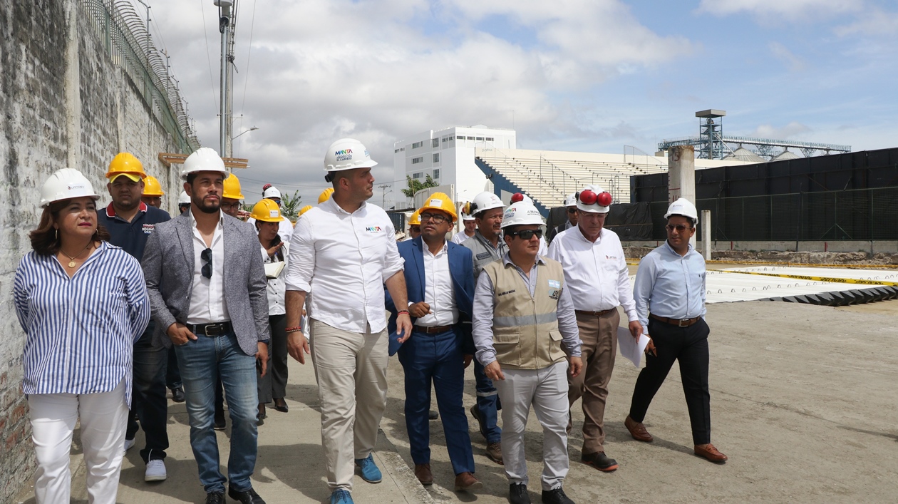 Alcalde y concejales de Manta, junto a técnicos de la empresa constructora.