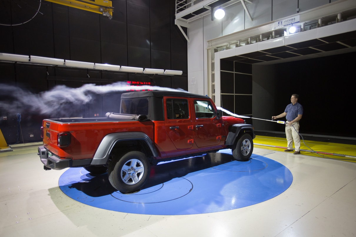 El ingeniero Peter Milosavleski, quien estuvo a la cabeza del desarrollo de la Jeep Gladiator, hizo una demostración a los periodistas de cómo opera el túnel de viento en el perfeccionamiento aerodinámico de los vehículos, proceso que parte con modelos a escala hechos en plastilina, hasta llegar al prototipo en tamaño real.
