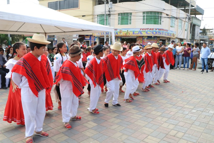 En el céntrico Parque San Patricio de la Parroquia Eloy Alfaro, en la ciudad de Manta, un grupo de adolescentes que estudian en la Unidad Educativa Carlos Pólit danzó artísticamente para abrir la Hora Cívica municipal en homenaje a esta parroquia, que celebra sus veintitrés años.