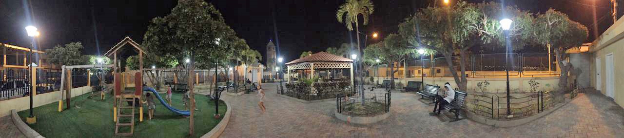 Ahora el parque está bien iluminado durante las noches y puede apreciarse lo placentero que es recorrer sus sendas o sentarse a descansar o platicar en uno de sus bancos, con el entorno relajante de sus estructuras ornamentales y utilitarias, y entre ellas los árboles y las trepaderas vegetales.