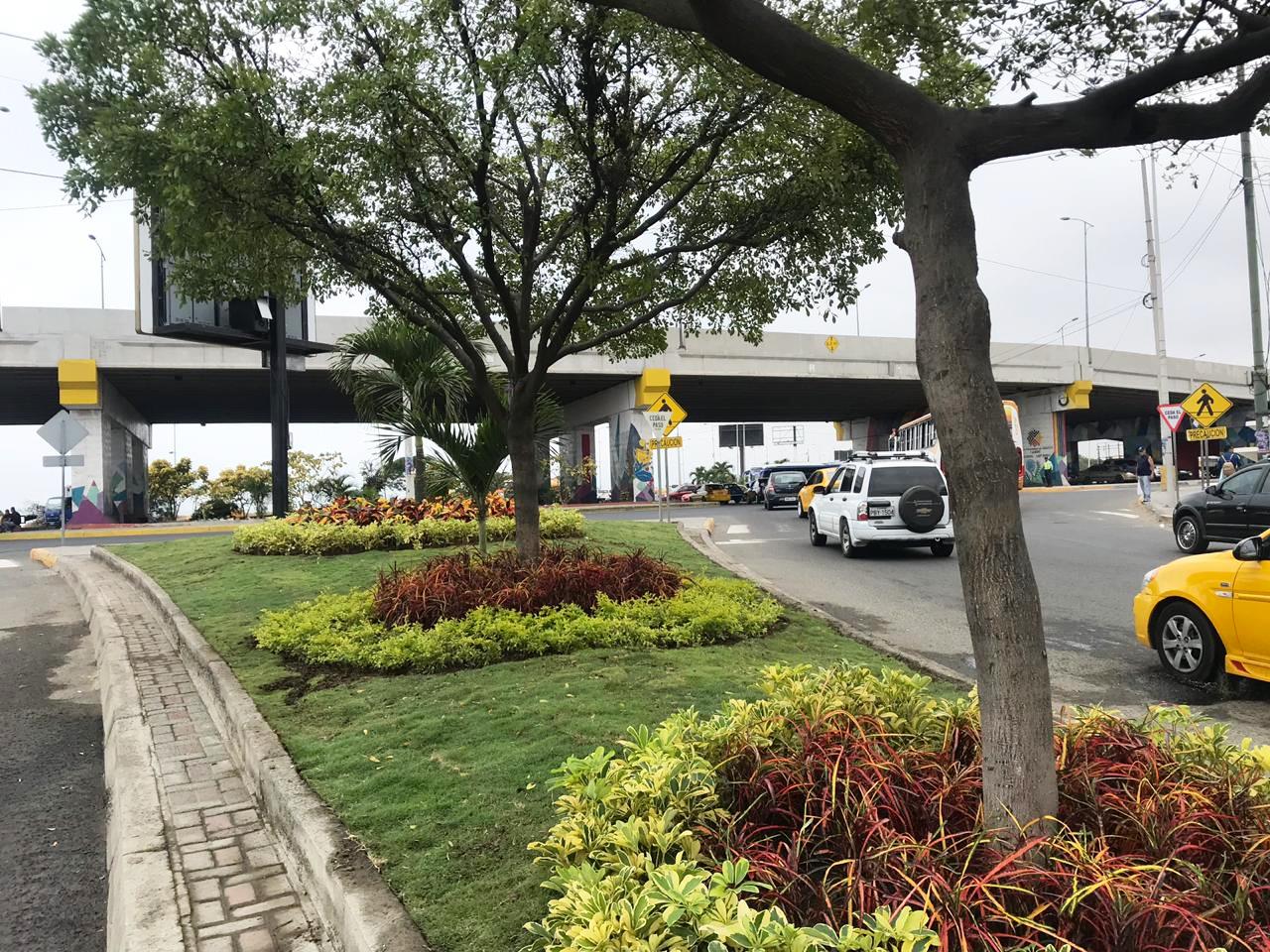 Lo acabamos de ver en un tramo de la Avenida de la Cultura, desde el redondel vial situado enfrente de la empacadora pesquera Inepaca (norte) hasta la Unidad Educativa 5 de Junio (sur). En el parterre lucen plantas ornamentales como filo hindú, crotillos ornamentales, chifleras, crotos Monalisa y árboles de olivo negro.