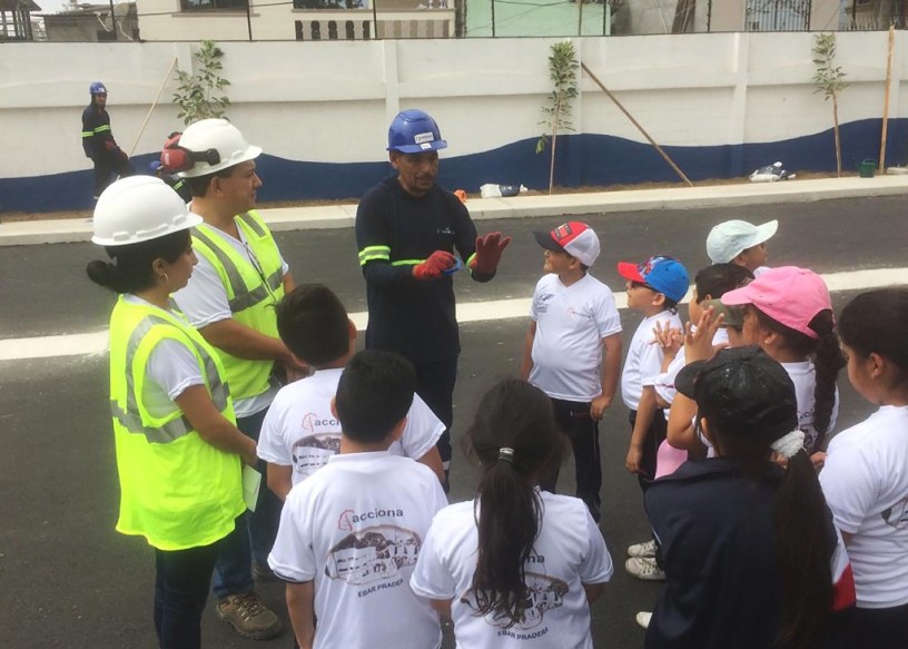 Al llegar a la obra, los alumnos recibieron una corta charla introductoria sobre los trabajos que Acciona está llevando a cabo para dotar a la zona de una nueva estación de bombeo, que formará parte de la futura planta de tratamiento de Las Esclusas y que contribuirá a modernizar la red de depuración de Guayaquil, la mayor urbe del país.