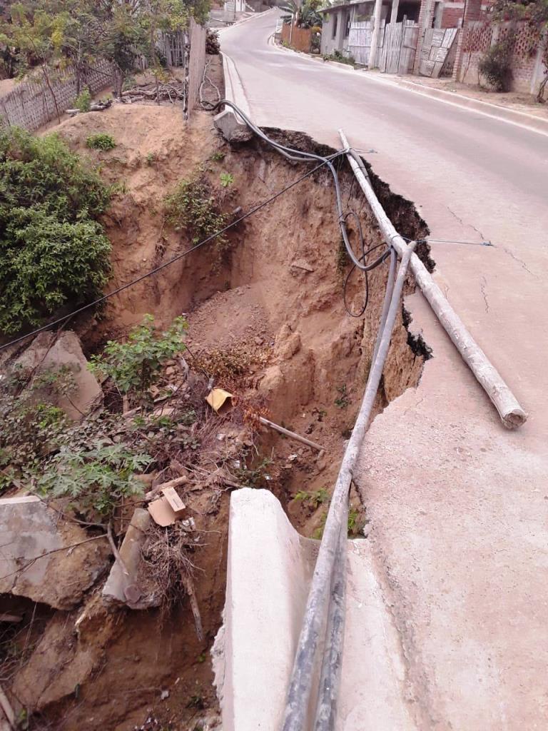 Estudiantes y profesores de una escuelita rural de Las Piñas (Parroquia San Lorenzo, al suroccidente del Cantón Manta) se libraron de caer a un profundo abismo, arrastrados por la tierra, durante un derrumbe reciente de la ladera donde se halla la vía que comunica a la unidad educativa de dicho lugar. Felizmente, cuando sucedió el deslizamiento, ellos ya habían pasado por ese lugar.
