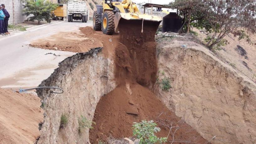 La ladera cedió esta semana y apenas informado del hecho, el Municipio de Manta interviene con personal y maquinaria pesada hasta dejar expedita la parte dañada de la vía.