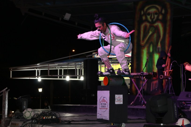Sin palabras mal sonantes, ni chistes de mal gusto, el humor blanco de los artistas cautivó a más de 600 personas que asistieron a la Plaza Cívica Eloy Alfaro, la noche del viernes 13 de septiembre del 2019. Era la función del Teatro Clown Mundo Circo, de Quito, y su obra ‘Equilibrium’. Con esa obra inició la serie de presentaciones de la trigésima segunda edición del festival.