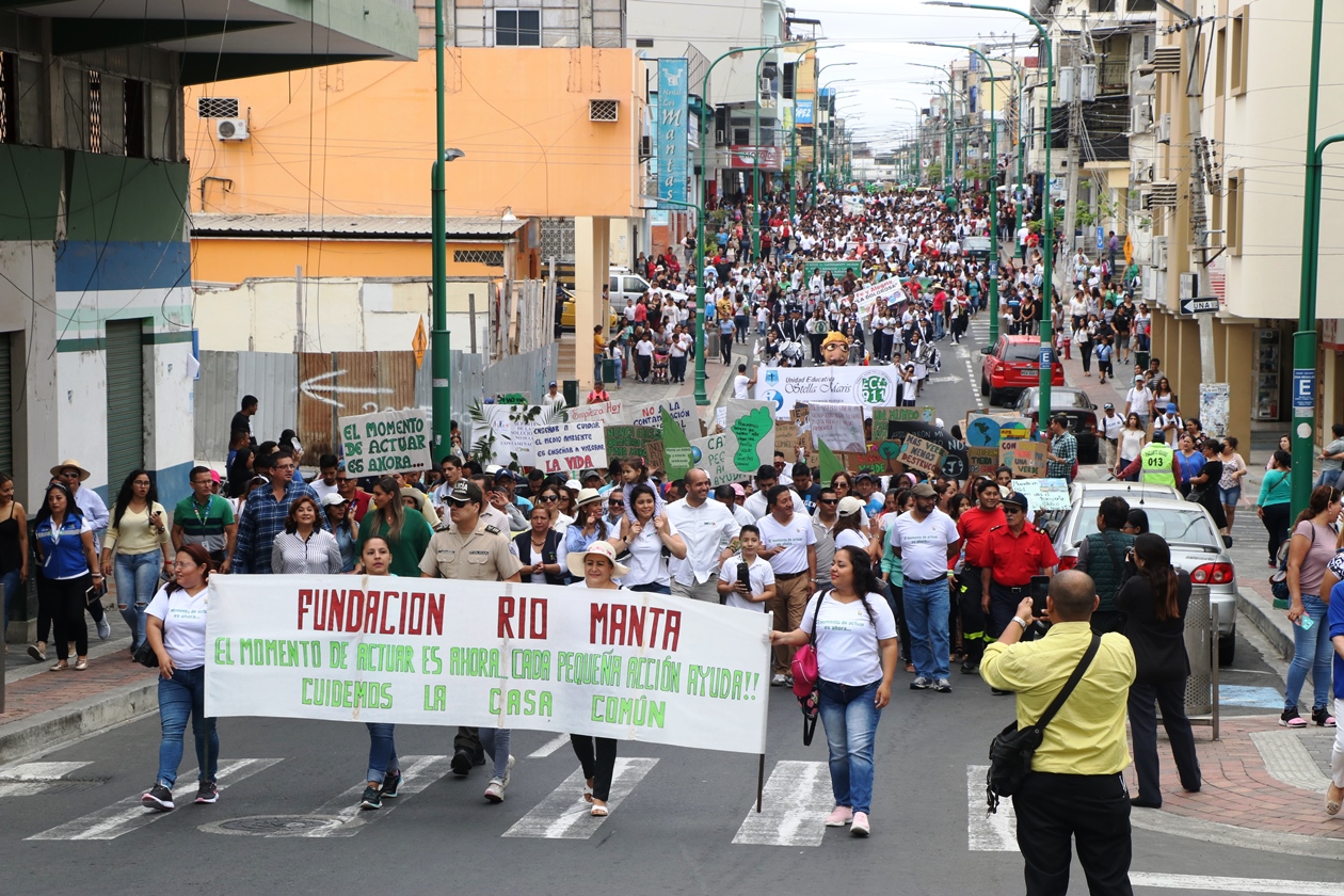 La marcha de Manta por el clima, desarrollada el viernes 27 de septiembre del 2019, la hicieron estudiantes y profesores de unidades educativas previamente comprometidas por las máximas autoridades públicas cantonales, quienes marcharon encabezando la movilización. Este evento fue convocado, conjuntamente, por el Gobierno municipal de Manta y la Fundación Río Manta. Los estudiantes aprovecharon la ocasión para presentarle al Municipio proyectos que suponen una contribución para solucionar el problema de la contaminación dentro del territorio cantonal.