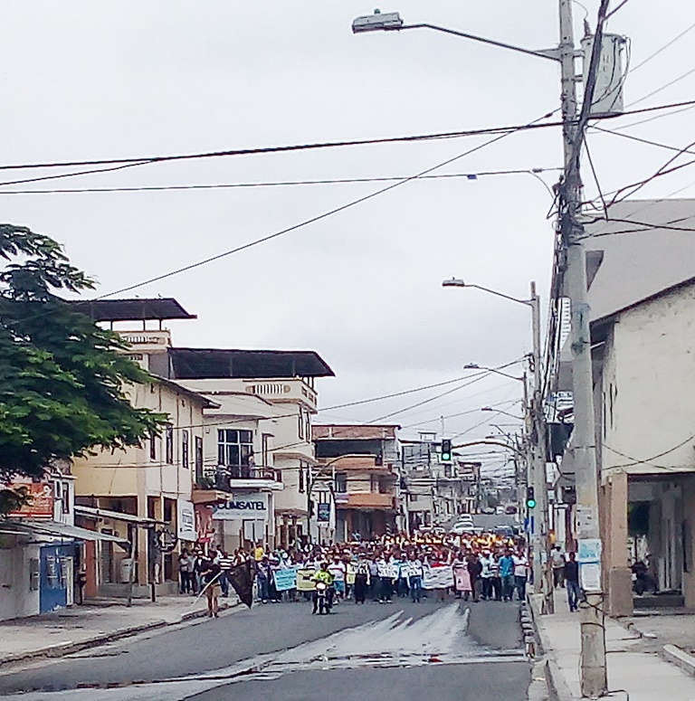 En algunas ciudades, como Portoviejo y Manta, hubo manifestaciones callejeras en la mañana y en la tarde. En la primera fueron más multitudinarias y ruidosas que en la segunda donde se expresaron varios grupos por separado y en diferentes vías (Calle 13, Calle 15 y Avenida 113, entre otras) y en la plaza cívica.
