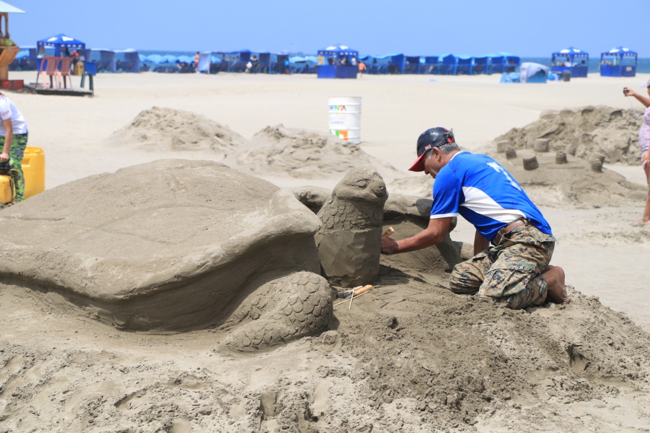 En realidad era una figura muy bien lograda, esculpida en arena. Fue una de las que se elaboraron la mañana del sábado 19 octubre del 2019, en la playa de El Murciélago.