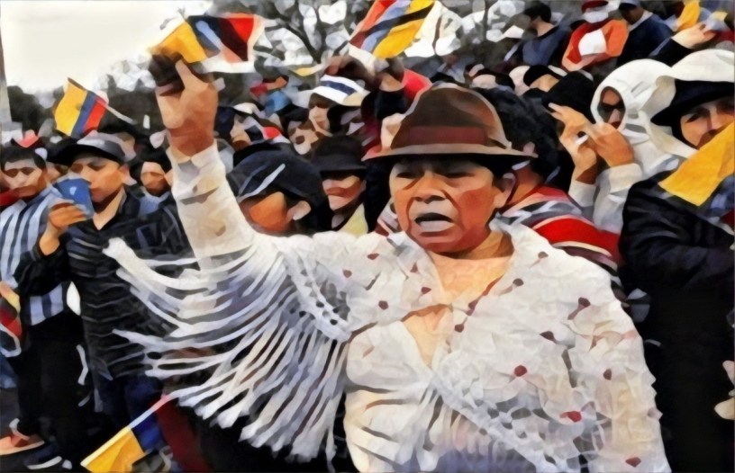 El 2 de octubre del 2019 en Ecuador estalló una ola de paros en todas las regiones del país; cierres de vías en el Litoral causados por montubios; en la Sierra, manifestaciones pacíficas dirigidas por el pueblo indígena; que se volvieron fuertes acciones de represión contra la población por parte de la fuerza pública, causando muertes, heridos y detenidos. Estas manifestaciones producidas por el rechazo a medidas económicas implantadas por el actual régimen, conforme a carta de intención sugerida por el Fondo Monetario Internacional (FMI), determinó una decisiva participación del pueblo en general, y una invalorable presencia de la mujer indígena.