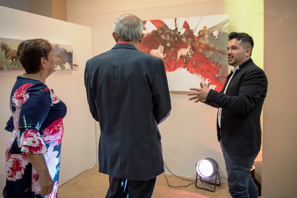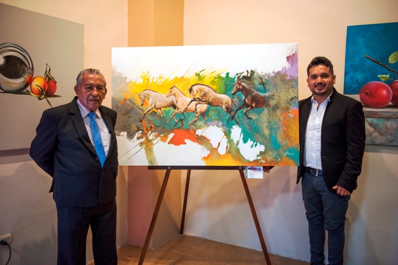 Edison Díaz Martínez, también de la Sierra ecuatoriana, acumula veinte años de trayectoria como pintor, habiendo expuesto sus obras dentro y fuera del país. En la muestra que está exhibiendo en Manta hay doce coloridas pinturas, de las que el centro de su creación son los caballos.