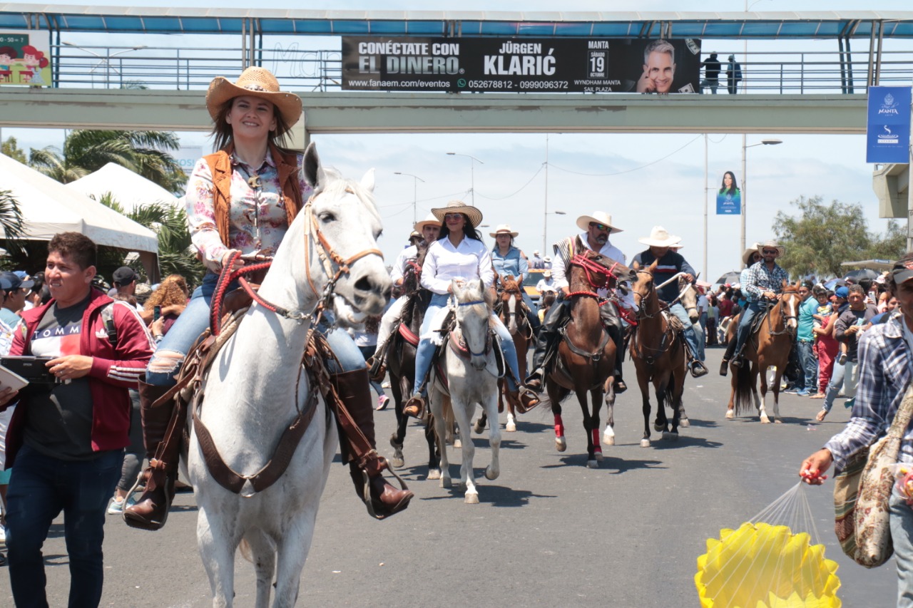 En la parte final del desfile por los 97 años de cantonización de Manta -el día lunes 4 de noviembre del 2019-, 300 caballistas rindieron homenaje a este territorio encarnado en su ciudad cabecera, en cuyo pie marítimo se halla el gran puerto mercante que la comunica con el mundo.