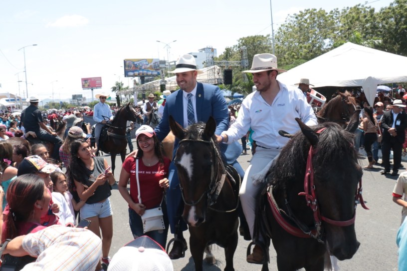 El alcalde Agustín Intriago, sin tomar en cuenta la formalidad de su traje, no se resistió a la invitación de cabalgar y, subiéndose a uno de los caballos, saludó nuevamente al público reunido en la avenida Jaime Chávez Gutiérrez (malecón). La concejala María Beatriz Santos y la flamante reina de Manta, Antonella Moreira, se sumaron a la cabalgata por un instante.