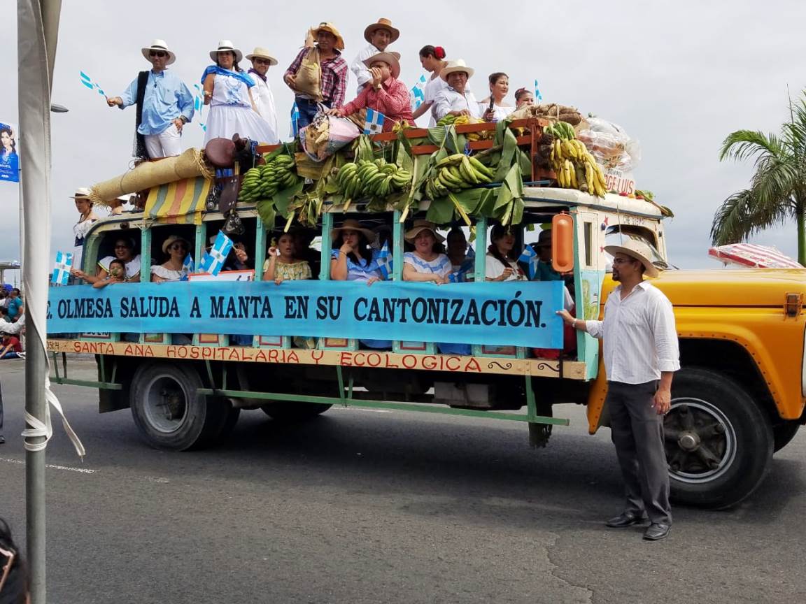 El desfile cívico desarrollado en la mañana de ayer, lunes 4 de noviembre del 2019, por los 97 años del Cantón Manta, tuvo la impronta de una imagen diferente que la Administración municipal en funciones trata de implantar. La tribuna, reservada tradicionalmente para las autoridades públicas locales y las visitantes, esta vez fue ocupada por ciudadanos comunes, en tanto que el alcalde Agustín Intriago Quijano, mezclado con los espectadores llanos que se acercaron a él, estaba de pie sobre la vereda mirando el paso de las delegaciones que desfilaban enfrente.