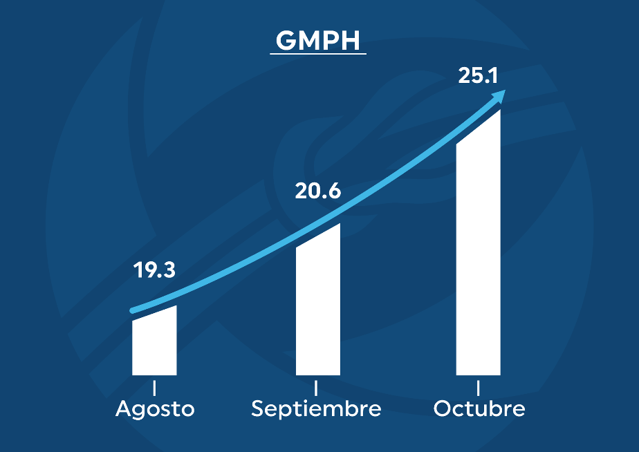 Como ejemplo, el tránsito gate to gate (puerta a puerta, en español) previsto originalmente en treinta minutos, se ubica actualmente en 19 minutos. Es decir que, en ese tiempo, los camiones con carga de importación o exportación hacen todo el recorrido para dejarla o recibirla. Así mismo, ha tenido fluidez el proceso de carga y descarga de los buques, gracias a que, en promedio, las grúas pórtico (las más grandes de Sudamérica) tienen a la fecha una productividad de 32.7 movimientos por hora. Al inicio de operaciones, el número de movimientos estaba por encima de 19 por hora, como lo muestra el gráfico a continuación: