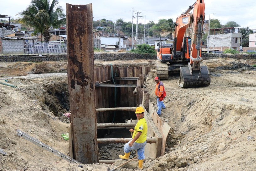Allá está construyendo un colector de aguas servidas, adyacente al cauce del Río Manta, y la ejecución de la obra lleva un 80 % de avance, por lo que hasta finales de diciembre próximo se espera culminarla. Su financiamiento es un alcance del crédito de 100 millones de dólares que el Banco Mundial otorgó hace 5 años al Municipio de Manta.