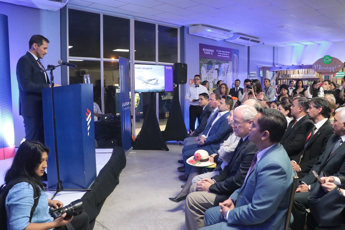 Tras el arribo a Manta, los ejecutivos de Latam en Ecuador realizaron una ceremonia de inauguración. En ella detallaron que en la ruta Manta-Quito-Manta se volará los días martes, jueves y domingo, en horario de 19h30 desde Quito y 21h00 desde Manta.