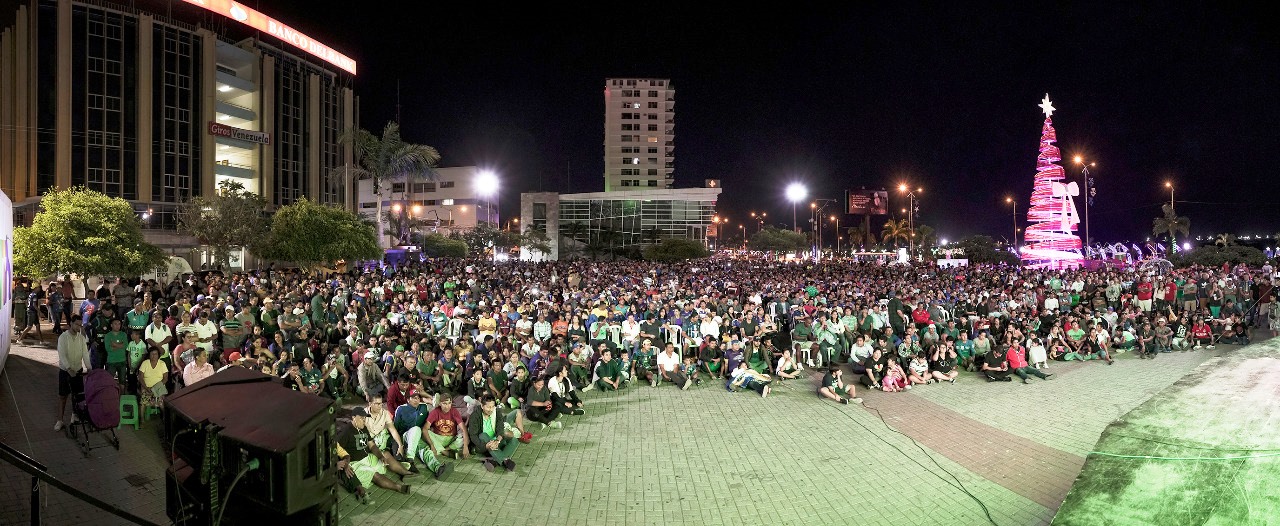 Más de cuatro mil hinchas del fútbol profesional se congregaron en la plaza cívica de Manta para seguir el desarrollo del partido entre el equipo local Delfín y el de la Liga Deportiva Universitaria de Quito, que jugaban en el Estadio Rodrigo Paz de este último en la capital de la República, disputándose la semifinal del campeonato ecuatoriano del 2019, torneo que ahora se llama Liga Pro para emular al campeonato español.